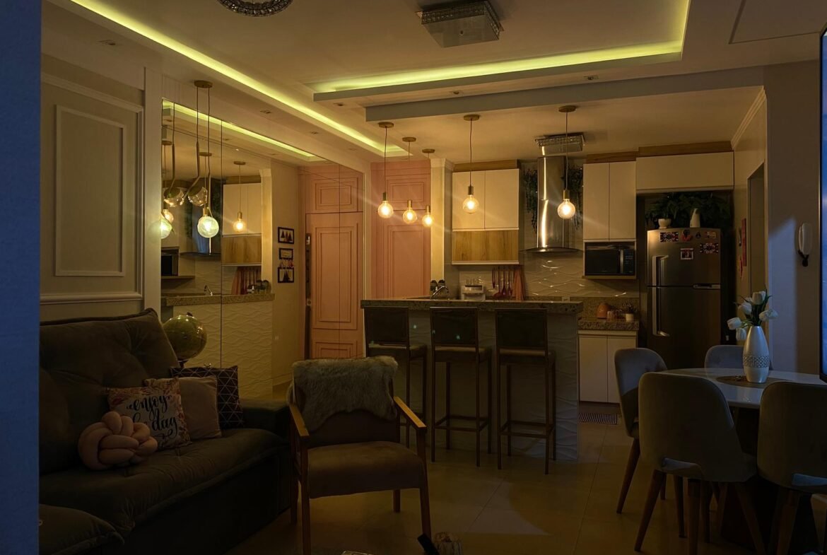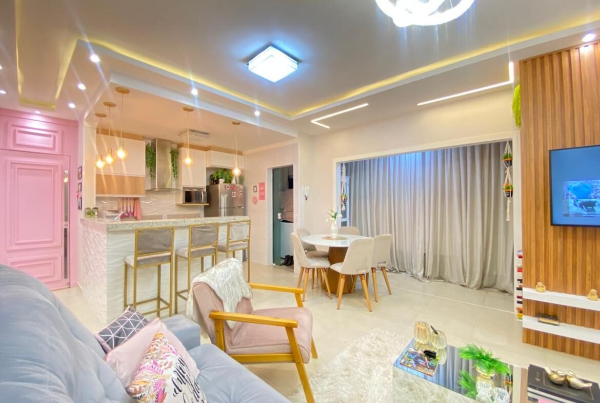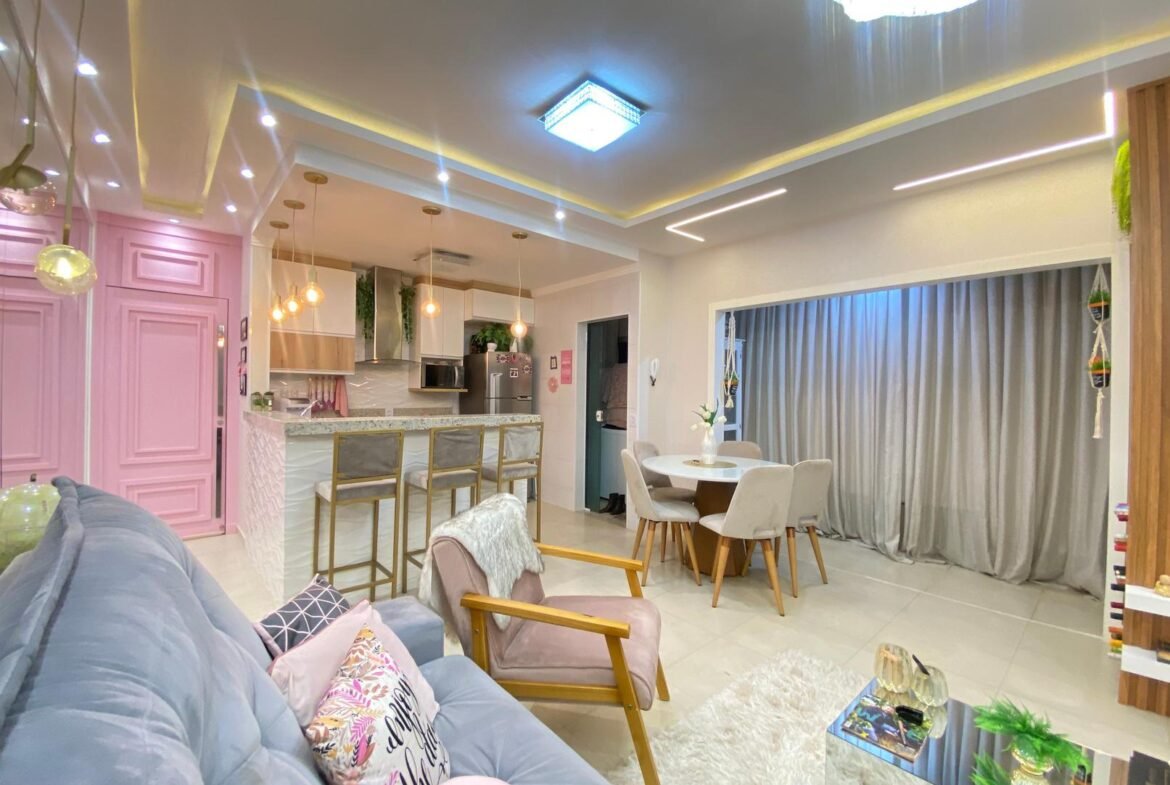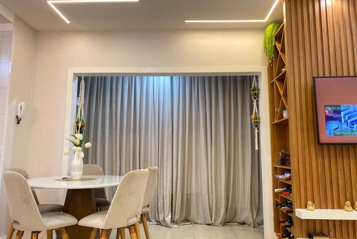 🌟 Completo por R$ 780.000,00: sancas e forros de gesso, iluminação, som ambiente, varando integrada, cozinha planejada, banquetas, geladeira, fogão, microondas, coifa, sofá, mesa e cadeira, painel de TV com adega embutida, cama de solteiro com cama auxiliar, painel de TV, criados, penteadeira, armário embutido quarto de solteiro, painel cabeceira quarto de casal, painel de TV, criados, armário revestido com espelho, som ambiente, banheiro planejado com armários e espelhos, spots, led e lustres.