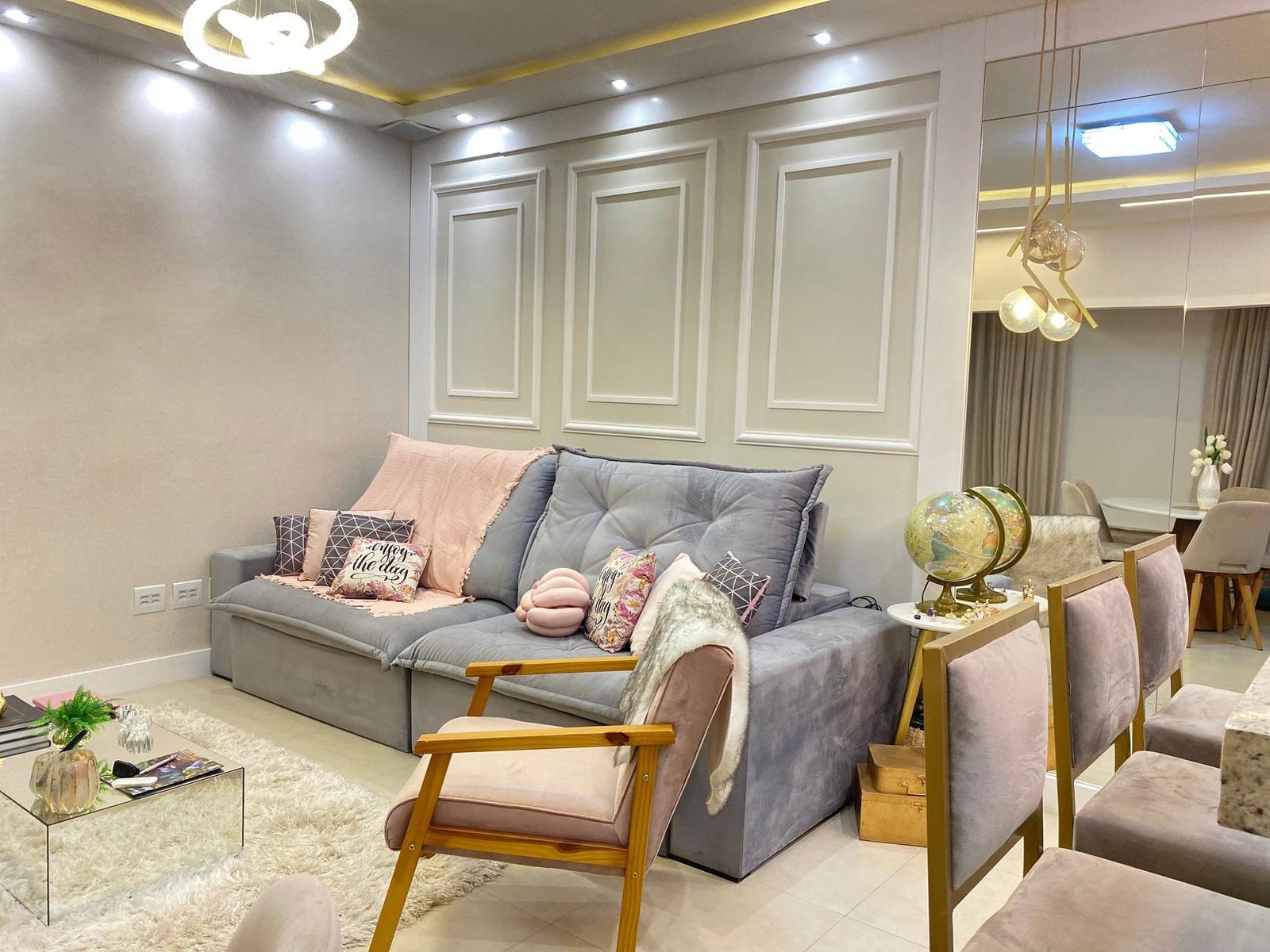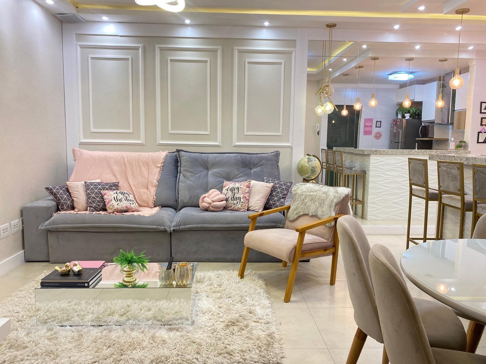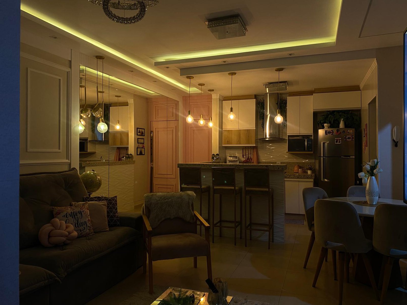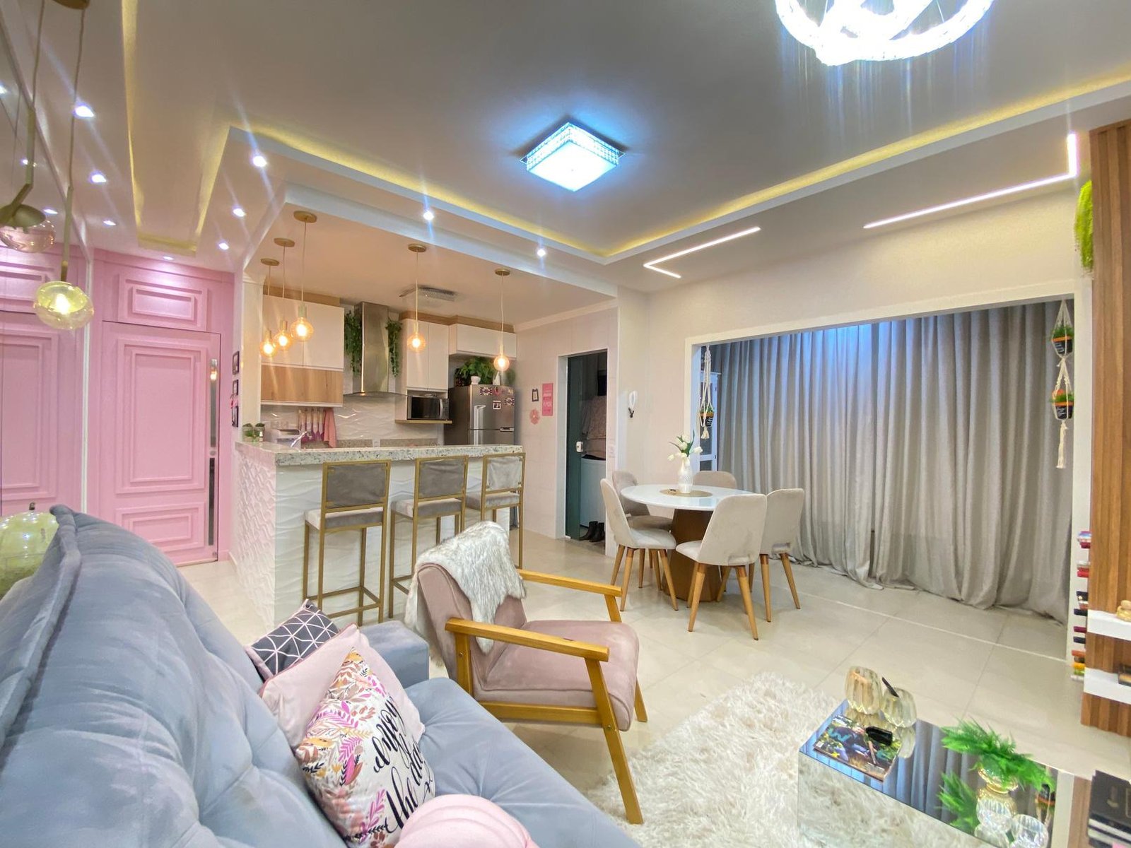 🌟 Completo por R$ 780.000,00: sancas e forros de gesso, iluminação, som ambiente, varando integrada, cozinha planejada, banquetas, geladeira, fogão, microondas, coifa, sofá, mesa e cadeira, painel de TV com adega embutida, cama de solteiro com cama auxiliar, painel de TV, criados, penteadeira, armário embutido quarto de solteiro, painel cabeceira quarto de casal, painel de TV, criados, armário revestido com espelho, som ambiente, banheiro planejado com armários e espelhos, spots, led e lustres.