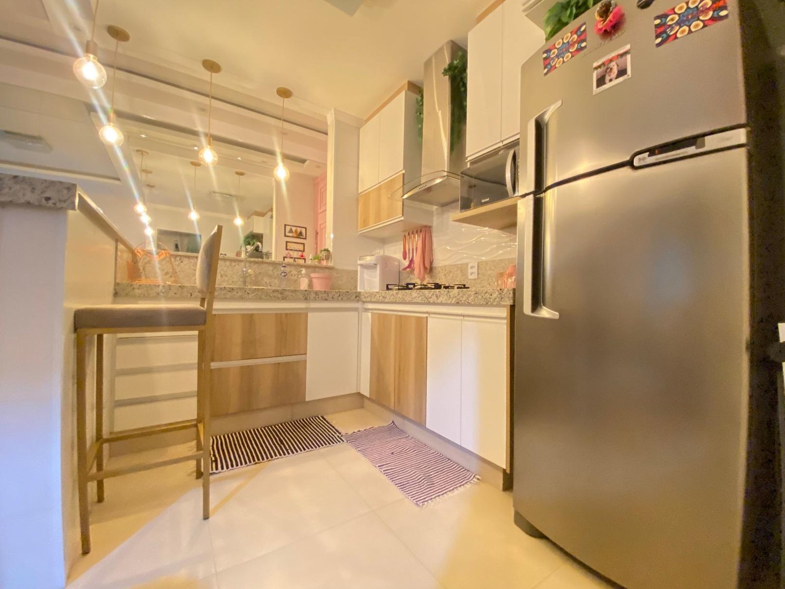 🌟 E por R$ 745.000,00: cozinha planejada sendo armário superiores e gabinete da pia, banheiro planejado com gabinete e espelhos, quarto de solteiro com armário embutido, quarto de casal com armário embutido espelhado, spots, leds e som ambiente.